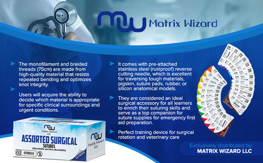 Mixed Sutures Thread with Needle (28Pk Dissolvable and Non-Dissolvable: 0, 1-0, 2-0, 3-0, 4-0, 6-0) - Surgical Suture Practice; Medical, Nursing, Vet Student's Hospital Practice Demo; Taxidermy