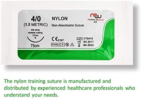 4-0 Sterile Suture Threads with Needle (24 PK Nylon) - Med School Demo, Suturing on Silicon Suture Dummies, Clinic Rotation Suturing, Taxidermy, Veterinary Use